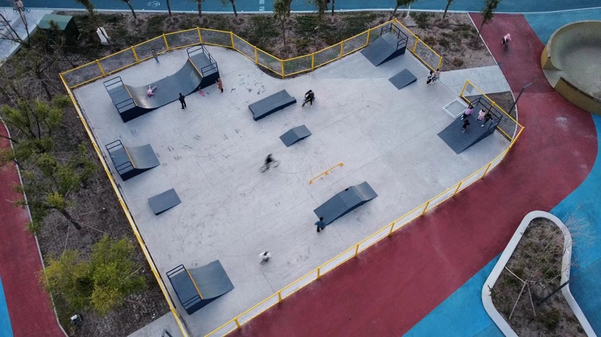 廣闊的滑板場地設(shè)計(jì)別具匠心,800多平面的街式場地區(qū)域、U型槽、小弧坡、小斜坡、雙斜坡、大小出發(fā)臺、大小拋出臺、跳箱、盒子、跳桿、坡跳臺各種都有。彎曲的曲線道、陡峭的坡道和各種令人眼花繚亂的障礙設(shè)施,處處挑戰(zhàn)滑手們的技藝和勇氣。無論是新手還是經(jīng)驗(yàn)豐富的滑板高手,都能在這里找到適合自己的挑戰(zhàn),一次又一次突破自我,感受成功的喜悅。